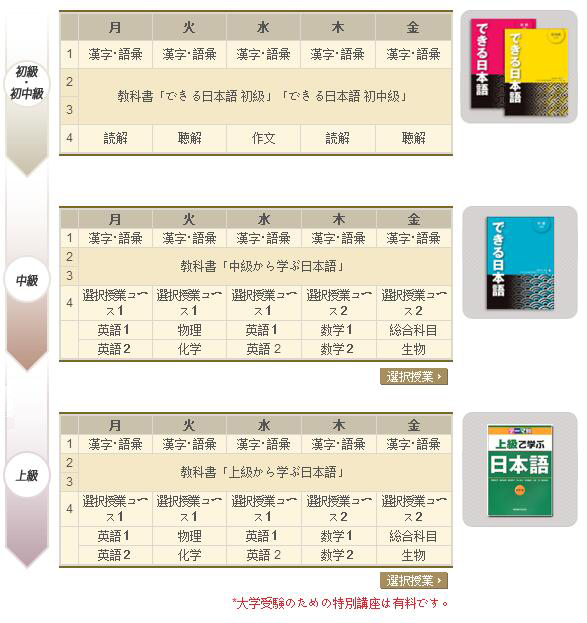 根据学生学习目的不同可选相应课程。开学考试会把日语水平相近的学生,安排在同一个班级。